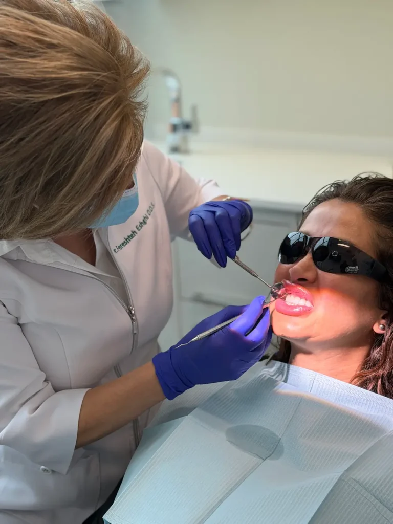 - Scaling: Using gentle ultrasonic tools, we remove plaque and tartar above and below the gumline.